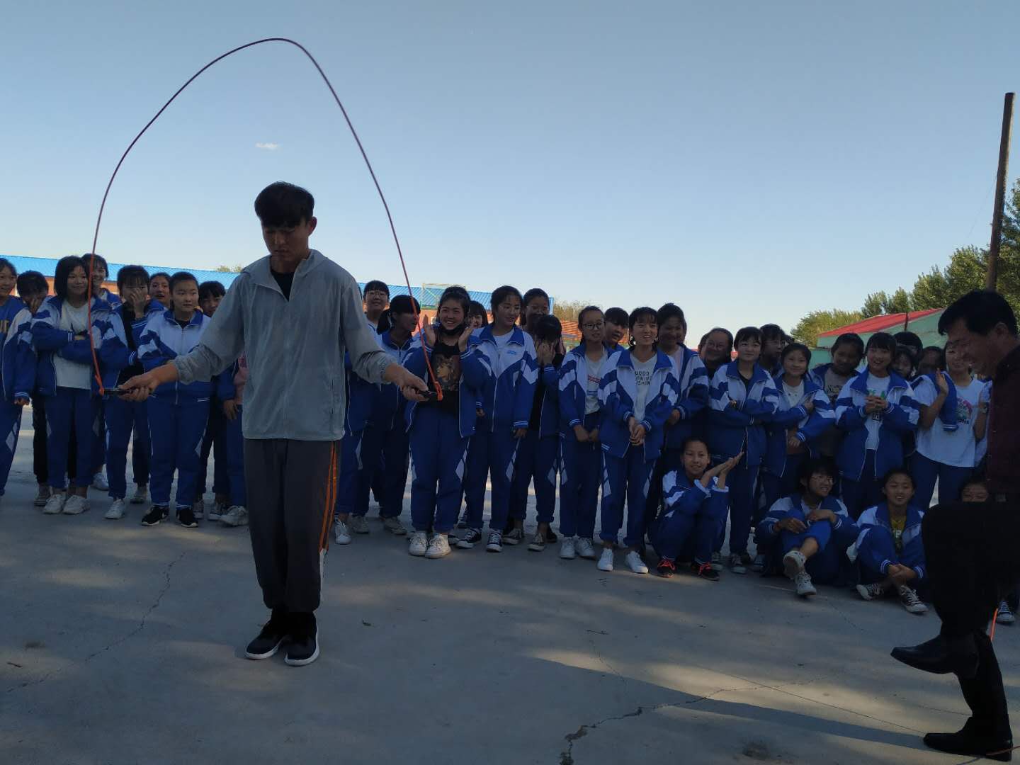 跳绳是学生喜爱的一项传统体育活动,通过跳绳运动可以促进学生心肺功能的提高,培养学生良好的意志品质;为了加强校园文化建设和丰富学生的课余生活,让更多的学生投身于秋冬季体育锻炼活动,增强学生体质,也为了把通榆县第六中学校的大课间活动推向一个新的高潮,七八年级学生于5月22日,在学校篮球场上举行了跳绳比赛 。