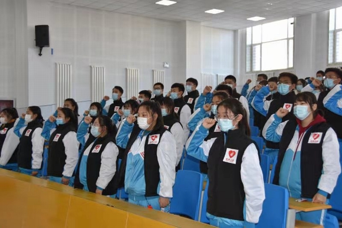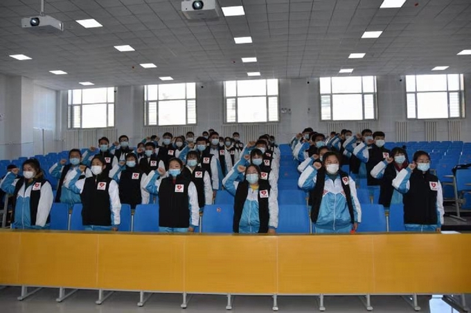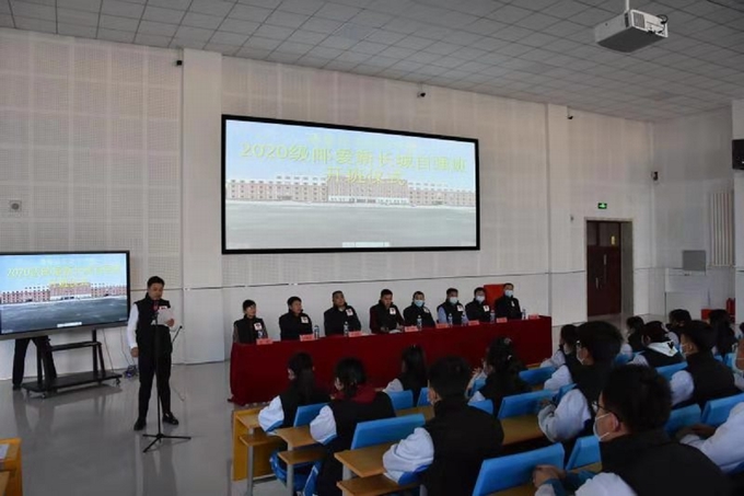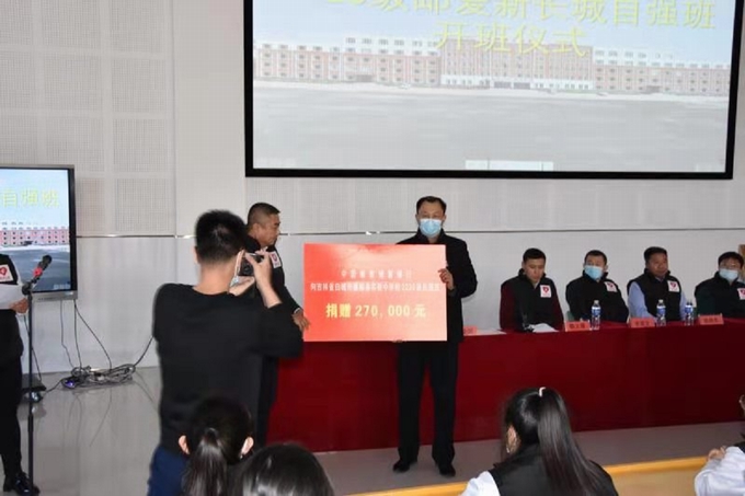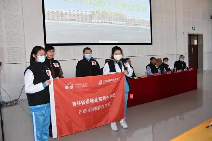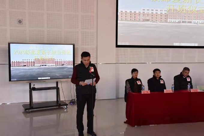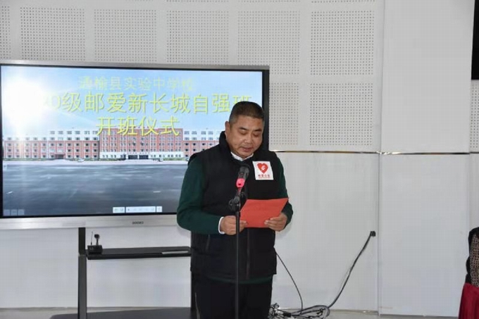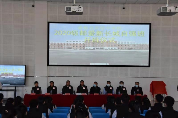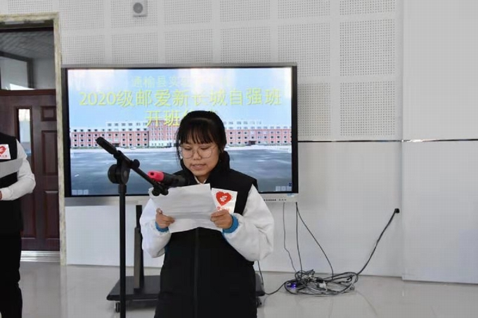 12月24日,通榆县实验中学校2020级邮爱新长城自强班开班仪式在新教学楼多媒体教室举行。