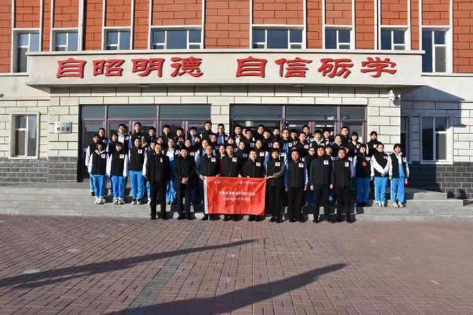 最后,全体自强班同学怀着一颗感恩的心,共同宣读“新长城自强宣言”,全体与会人员到实验中学教学楼前合影留念。