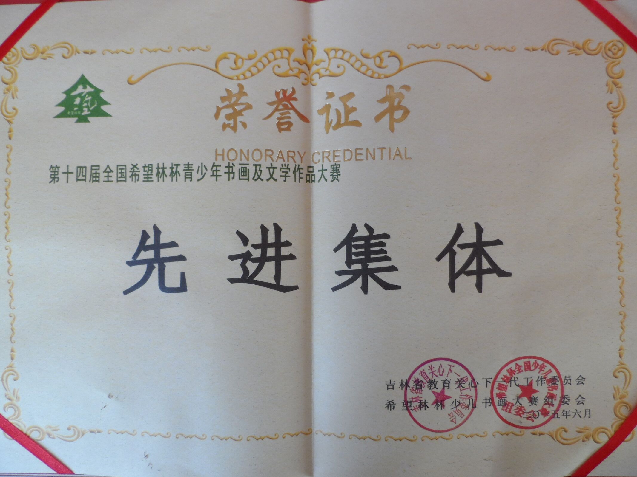 十花道学校在第十四届全国希望林杯青少年书画及文学作品大赛荣获“先进集体”