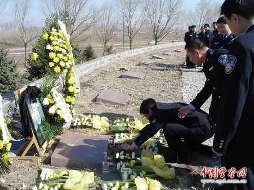 在遗体告别仪式上,一位盲人在别人的搀扶下来到了会场。这位老人姓王,几年前在一起交通事故中受了重伤,多亏当时路过的警察把他送到医院,才保住了他的生命,从那以后,他就把警察当成了自己的亲人。