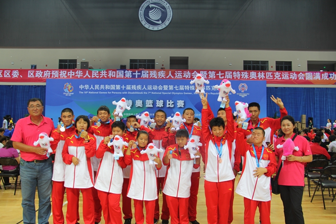 学生在第六届残疾人特奥会篮球比赛中获得女篮金牌、男篮银牌