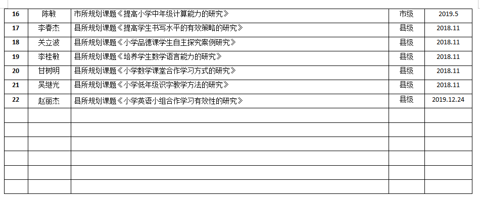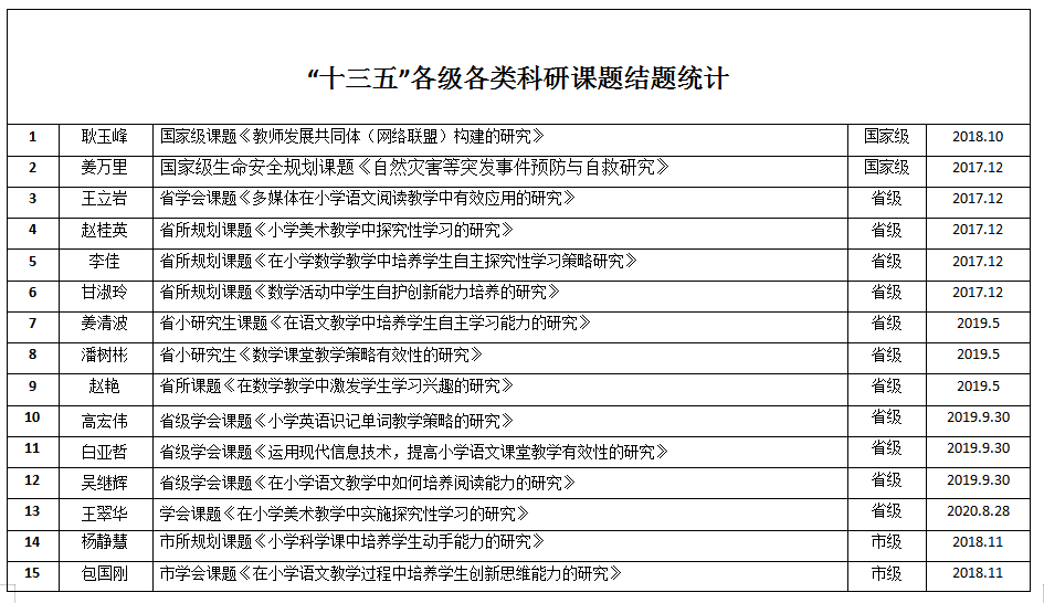 年“十三五”各级各类科研课题结题统计